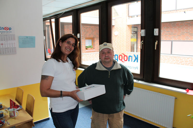 Seinen ersten Arbeitstag für das Knoop-Team absolvierte Silvio Grube am 13.7.2011. Nach 5 Jahren war es für uns an der Zeit, uns anlässlich seines 5-jährigen Jubiläums bei unserem 52-jährigen Baufacharbeiter für sein Engagement für Knoop zu bedanken. Dies übernahmen stellvertretend unsere Möllner Mitarbeiter Frau Kurz und Herr Kuchta.
