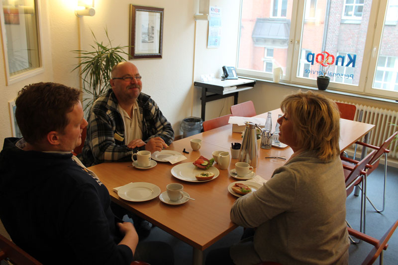Während eines gemütlichen zweiten Frühstücks bedankten sich Geschäftsführer Olaf Knoop, Personaldisponentin May Pries und Personaldisponent David Hanisch vom Personalservice in Lübeck bei Helmut Passow für die vergangenen 5 Jahre mit einem kleinen Präsent. Vielen Dank Herr Passow!