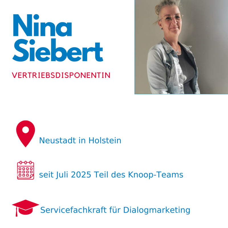 Als echte Frühaufsteherin mit Kaffeetasse in der Hand startet sie motiviert in den Tag. Dorfkind. Sommerliebhaberin. Und vor allem: Ostseekind durch und durch – authentisch, bodenständig und zielstrebig. Wir freuen uns auf die gemeinsame Zusammenarbeit, spannende Projekte und viele Erfolge. Willkommen im Knoop-Team, Nina!