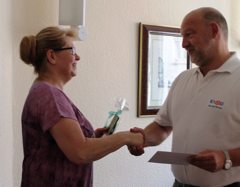 10 Jahre Uta Reeck bei Knoop - das war uns eine kleine Feier wert. Am 14.08.2015 bedankte sich Geschäftsführer Olaf Knoop im Namen des gesamten Knoop-Teams bei Frau Reeck mit Kaffee und Kuchen und einer netten Überraschung. In der gemütlichen Runde mit Prokuristin Michaela Knoop wurden die Anfänge der Zusammenarbeit lebendig.