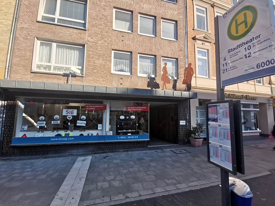 Davon betroffen sind die Buslinien 12, 30 und 40. Das heißt auch die Bushaltestelle direkt vor unserer Niederlassung in der Beckergrube 22 entfällt in dieser Zeit.In Richtung Gustav-Radbruch-Platz werden die Linien 12, 30 und 40 über Holstenstraße-Königstraße umgeleitet, in der Gegenrichtung werden die Linien 4, 10, 11, 21 und 31 über Fährstraße - An der Untertrave - Beckergrube - Schüsselbuden umgeleitet. Auch halten diese Linien an der Haltestelle Hansemuseum.